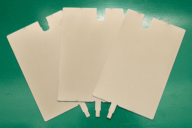Auf diesem Bild sieht man die mit Platin beschichteten Titanelektroden des ECAIA ionizer S nach mehrmonatigem Einsatz. Sie sind frei von Kalkansammlungen, da die patentierte, vollautomatische Elektrodenreinigung in Kombination mit der neuen mechanischen Umpolungs-Durchfluss-Technologie sehr zuverlässig arbeitet. Dadurch wird eine noch effizientere Ionisierungsleistung - vor allem bei kalkhaltigem Wasser - gewährleistet. Die Platten und der Strom-Anschlusszapfen sind aus einem Teil gestanzt und rundum nahtlos mit Platin beschichtet. Ein wichtiges Qualitätsmerkmal.